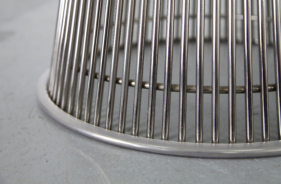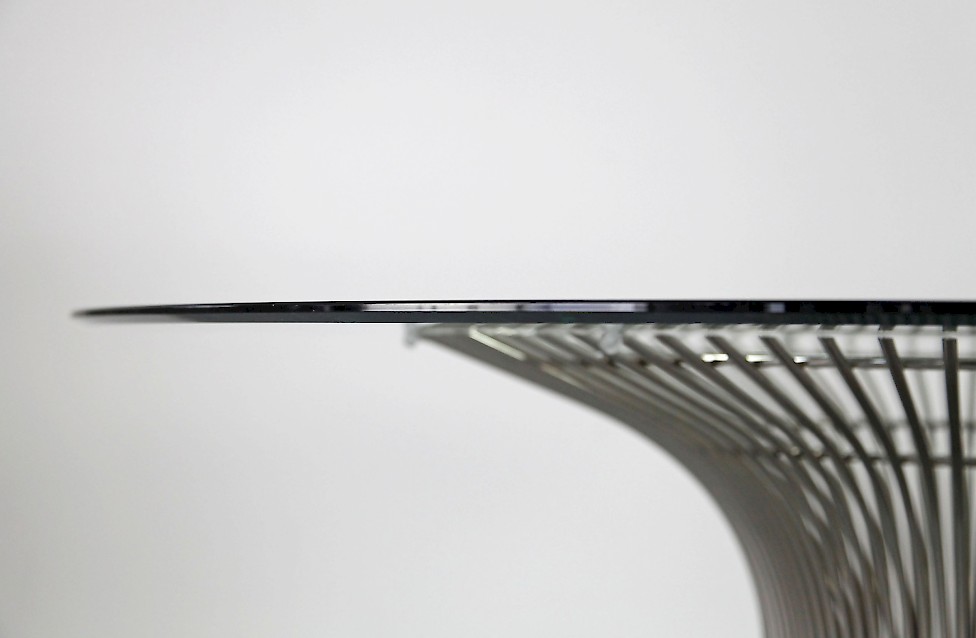 Esstisch von Warren Platner für Knoll International. Vernickeltes Stahlgestell mir originaler Glasplatte. Der Tisch ist in einem sehr guten Zustand mit altersgerechten Gebrauchsspuren. Das Glas zeigt feine Kratzer, das Gestell ist in einem sehr guten Zustand.