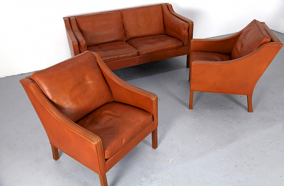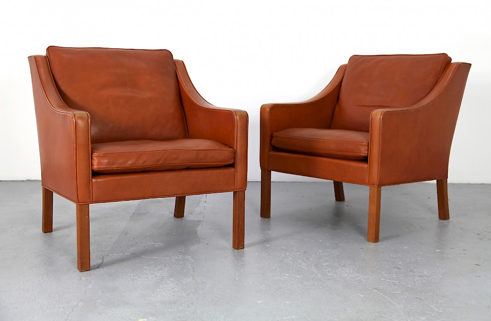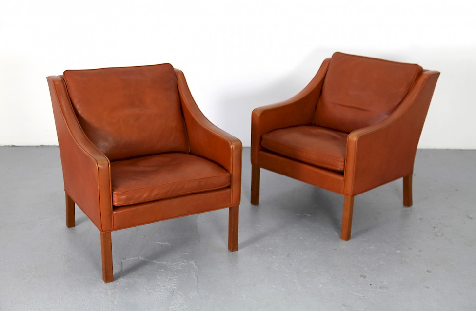 Zwei Echtleder Sessel von Børge Mogensen für Fredericia